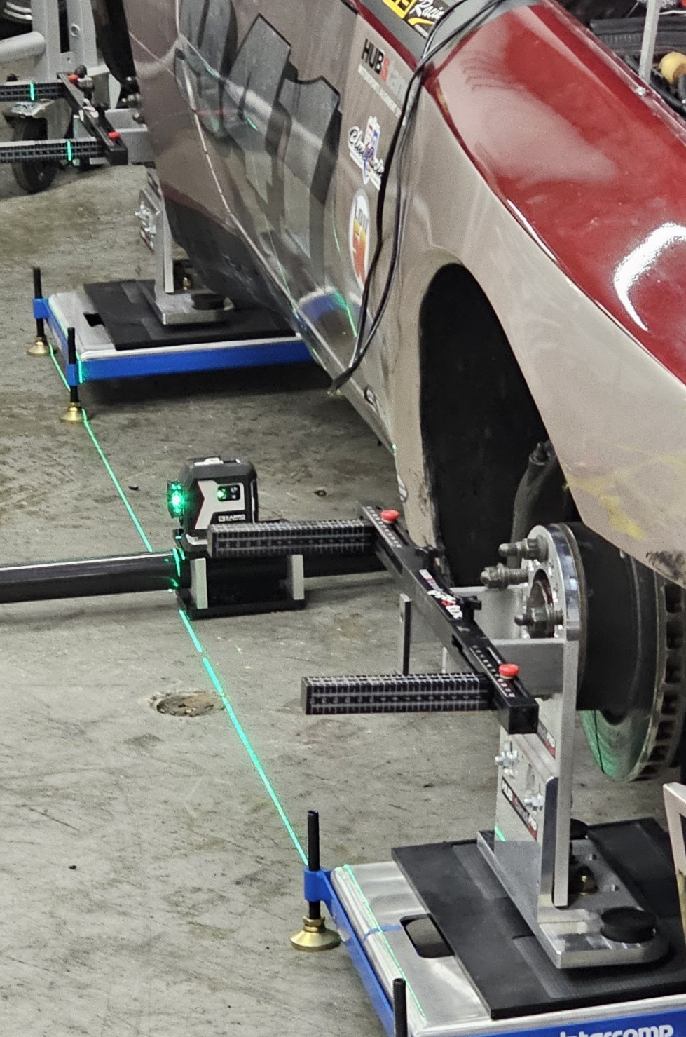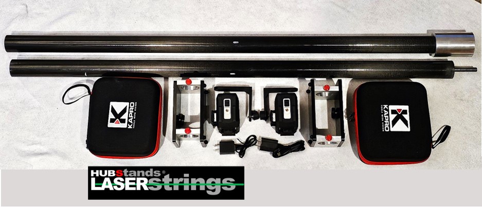 The LASERStrings are engineered to work with HUBStands ProSTIX and either our Pro or ProPLUS HUBStands alignment systems. Becasue they are freestanding and adjustable for chassis widths, they can be used on any race car with at least 3″ of clearance. They come with protective carrying cases for the laser units and for the carbon fiber chassis cross tubes.